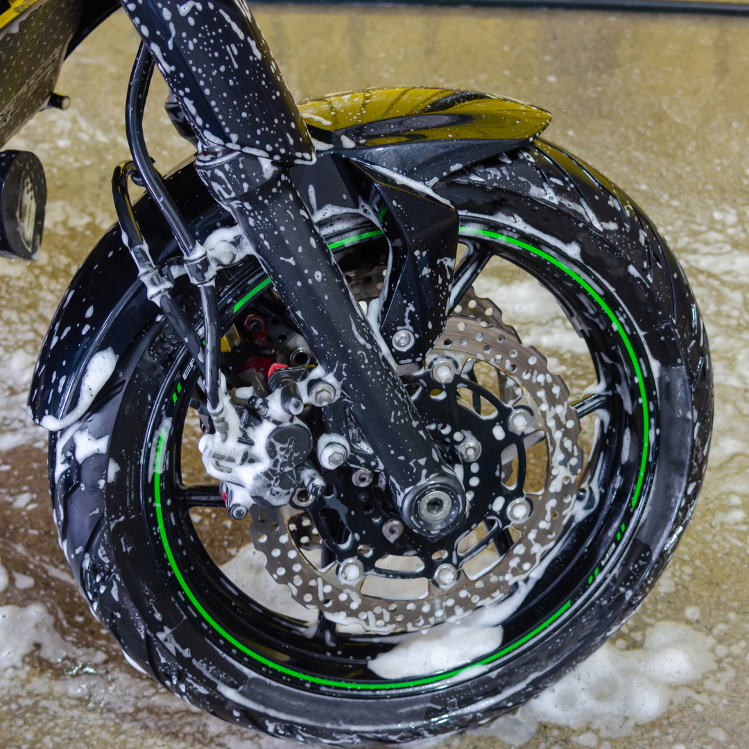 Wheel Cleaner, motosiklet tekerinizin en etkili temizliği sağlamak için özel olarak formüle edilmiştir. Tekerleklerdeki zor kirleri, yağ kalıntılarını ve fren tozlarını kolayca çözerken, yüzeylere zarar vermez. Bu ürün, pH nötr formülü sayesinde motosikletinizin boyasını, krom kaplamalarını ve plastik aksamlarını korur. Kolay kullanım için hem elle hem de köpük tabancası ile kullanılabilir.